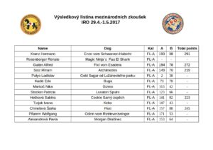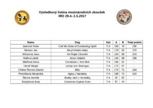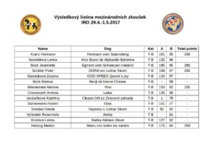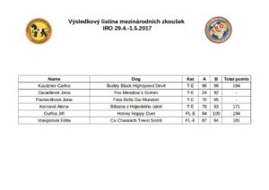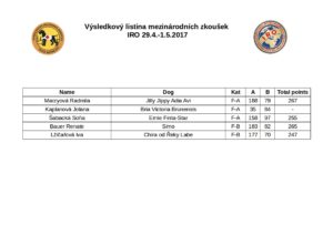Ve dnech 29.4.-1.5.2017 pořádala KZJ Mezinárodní zkoušky IRO, soutěžilo se v kategorii ploch, sutin a stop. Celkem nastoupilo více než 60 psovodů, kromě českých závodníků nechyběli ani zástupci Slovenska, Rakouska, Chorvatska či Rumunska.