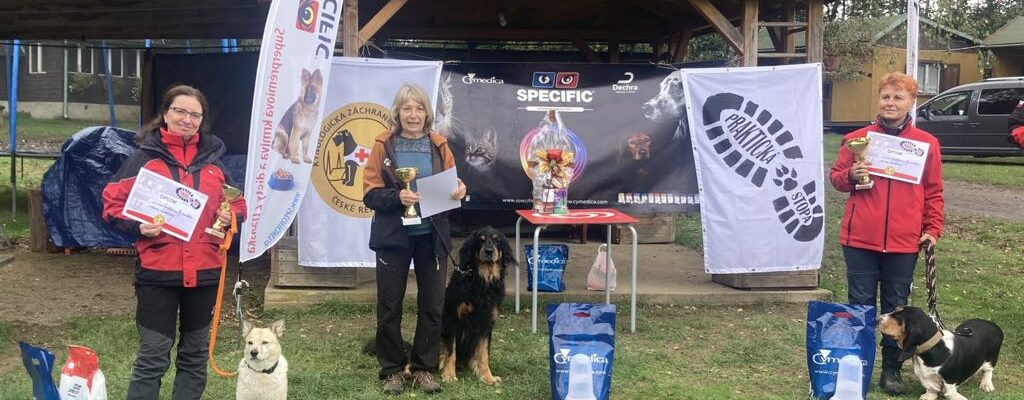 První říjnový víkend 4. – 6. 10. 2024 patřil již tradičně soutěži, a hlavně setkání stopařů Praktická stopa 2024. Již třináctý ročník se konal v rekreačním středisku Zahradiště na Vysočině. Letos byl nový realizační tým a pozměněny propozice závodu. U malé praktické stopy (rozhodčí Soňa Šabacká) jsme přidali komunikaci vysílačkou. Velká praktická stopa (rozhodčí Vladimír Makeš) se dělila na noční a denní práci. Noční stopa byla krátká a čerstvá, ale v lehké frekvenci u obce Radostín. Denní stopa cca 1 kilometr a vyhledání stopy z pachovky. Kromě správné stopy byl nášlap znehodnocen dvěma klamnými stopami. Stáří dvě hodiny, 4 předměty a kladeč na konci. Ten byl na konci samozřejmě i u noční práce a u malé praktické stopy. Počasí bylo skutečně stopařské, od pátku až do sobotního večera pršelo. Ne liják, ale takový ten vytrvalý vlezlý déšť. O to větší poděkování patří všem pomocníkům, kteří obětavě šlapali a následně leželi na konci stop. Za organizací takové akce jsou vždy pomocníci, které „není vidět“. Ti, co musí v předstihu objet terény a dát je do gps, kancelář, mailová komunikace, občerstvení formou rautu, motospojky, křížiči. Ředitelem akce byl letos Aleš Krč a zdá se, že založil novou tradici pozměněné praktické stopy. Všechny práce proběhly v rámci pátku večera a soboty. V neděli bylo vyhodnocení a přednáška s Tomem Ministrem, který nám ochotně předal zkušenosti ze své stopařské kuchyně. Děkujeme Vám všem za Vaši účast, nasazení, férové sportovní chování a těšíme se na Praktickou stopu 2025!