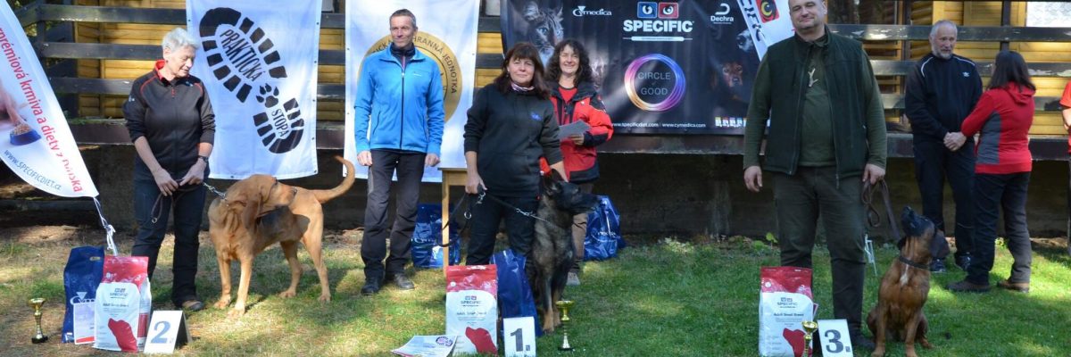 Součástí „výstroje“ psovodů jsou radiostanice (vysílačky) pro komunikaci s doprovodem a rozhodčím a GPS obojek pro zápis stopy. Na večerní hodnocení s promítáním položené a vypracované stopy s fundovaným výkladem rozhodčích se všichni těší.