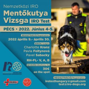 Mezinárodní IRO zkoušky ve městě Pécs (Maďarsko). Uzávěrka přihlášek 30.4.2022 – odeslat na irotesthungary@gmail.com a na kopii test@iro-dogs.org.